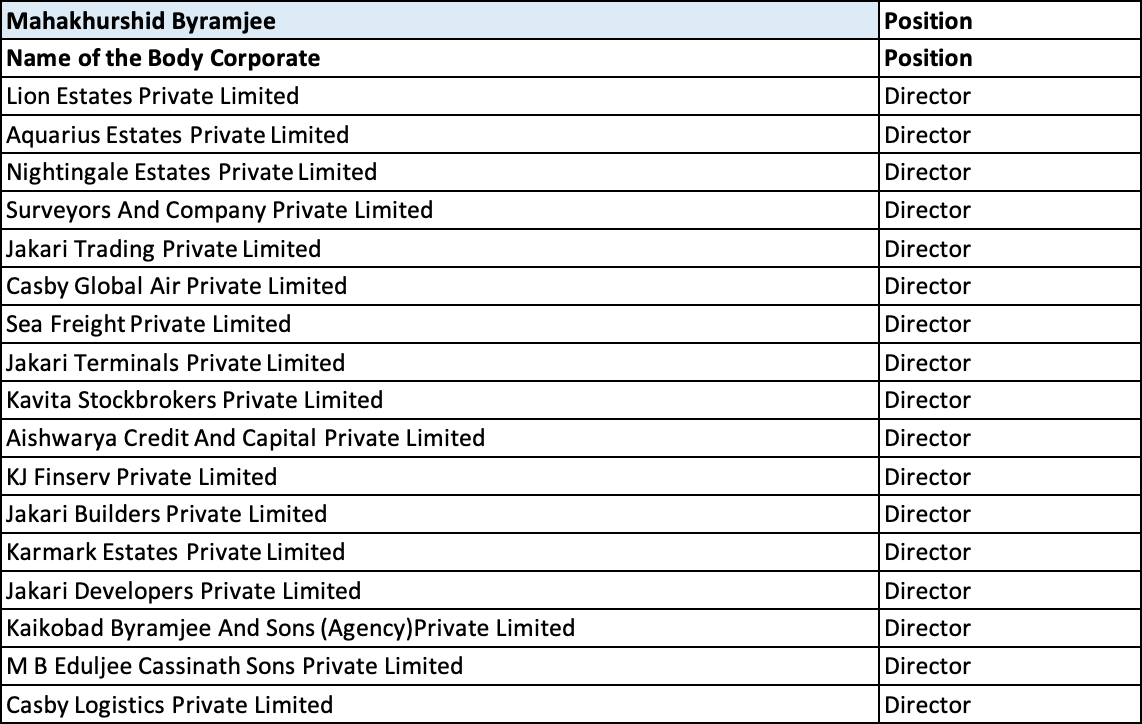 Mrs. Mahakhurshid K. Byramjee heads the real estate division of the Casby Group. She obtained her Bachelor’s degree in Commerce & Economics from Mumbai University.